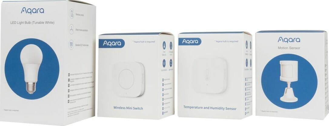 | Комплектация | беспроводная кнопка / датчик движения / датчик температуры и влажности / лампочка |