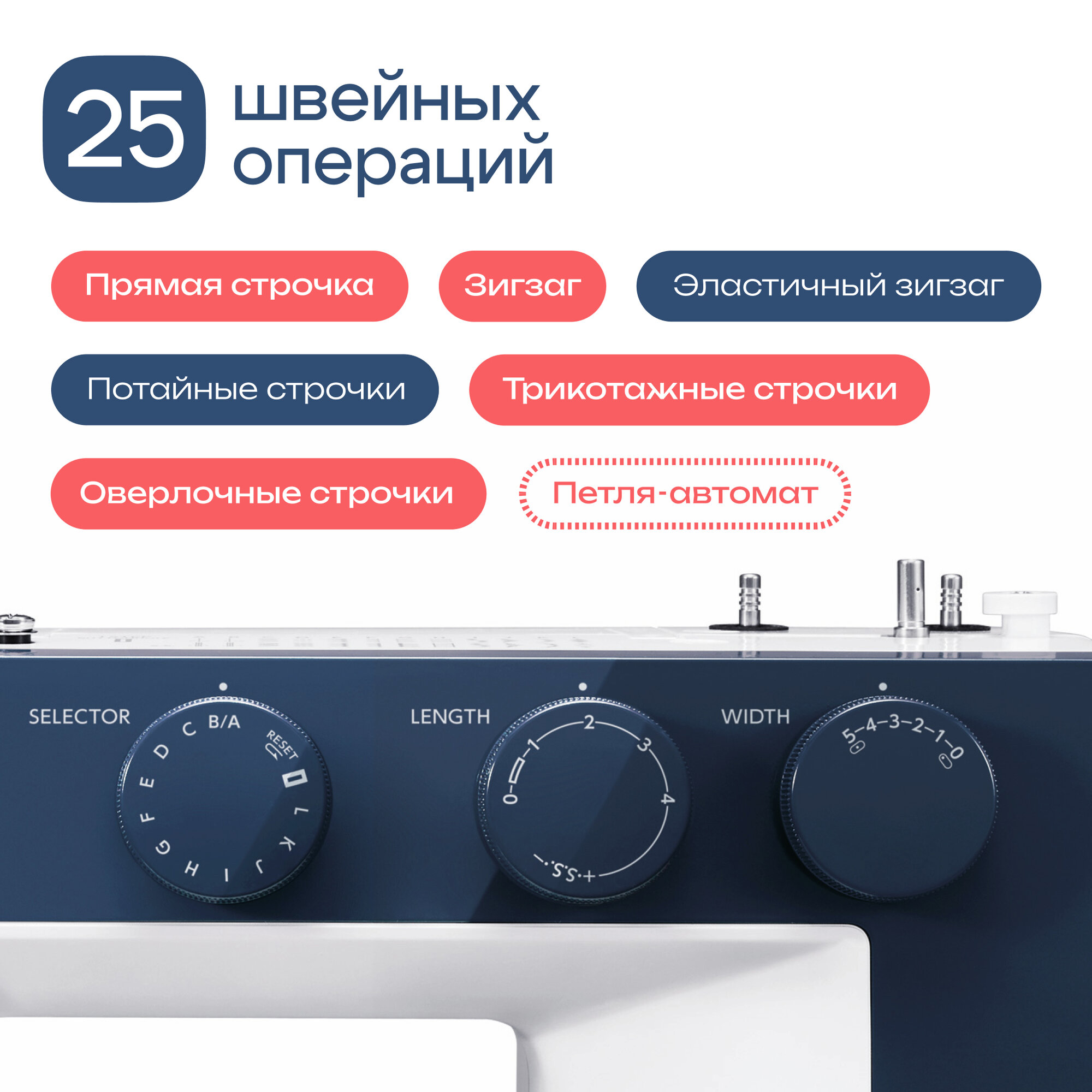 | Лапки в комплекте | для вшивания молнии, для пришивания пуговиц |