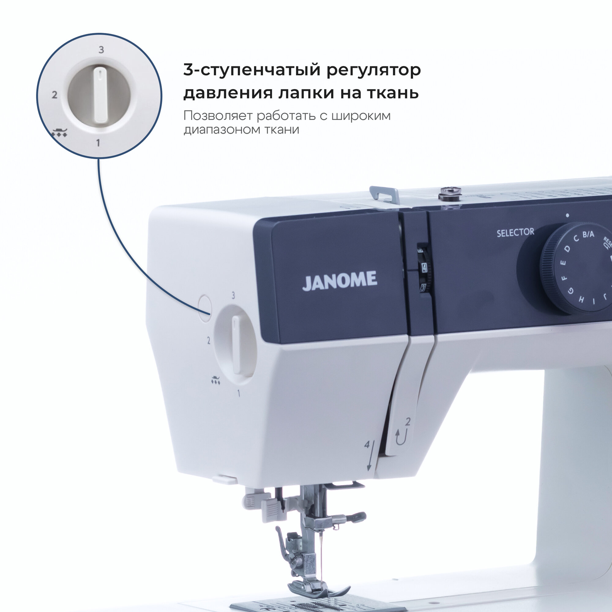 | Регулировка давления лапки на ткань | есть |
