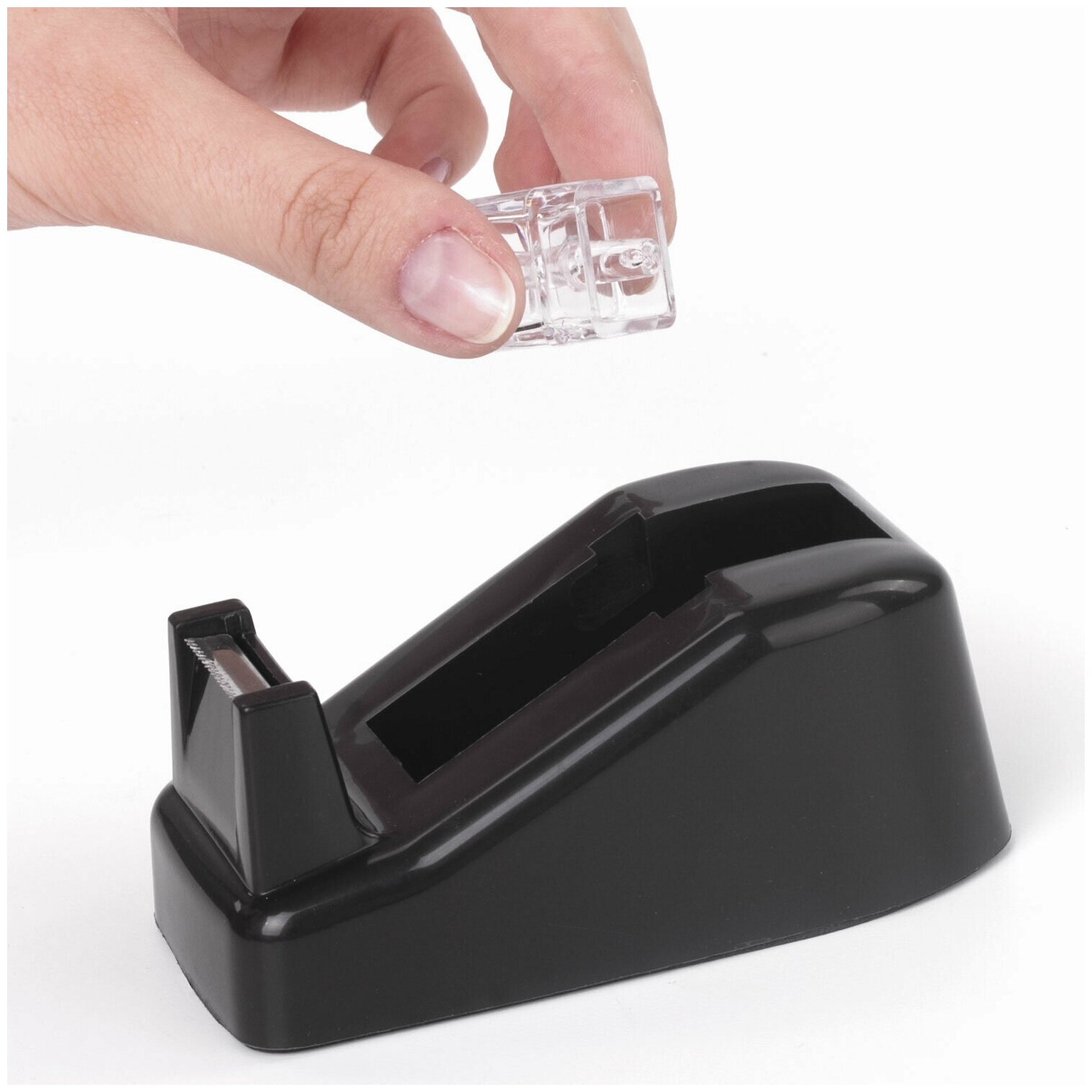 Диспенсер для клейкой ленты Brauberg Настольный, утяжеленный средний, черный, 11,8х5х5 см (440142)
