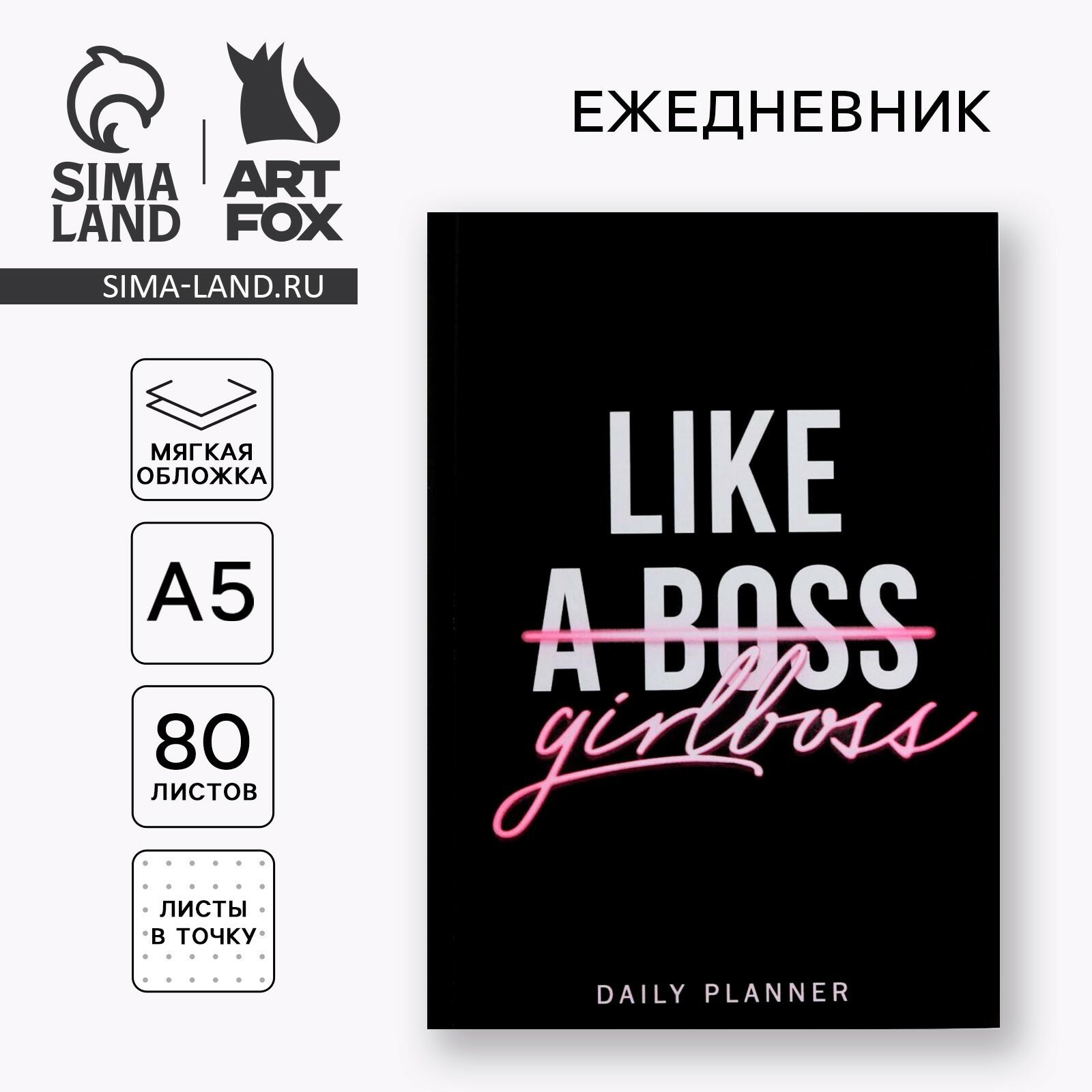 ArtFox Ежедневник в тонкой обложке Like girlboss А5, 80 листов