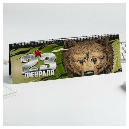 Планинг прямоугольный тонкий картон "23 февраля медведь" / Подарок интересное: