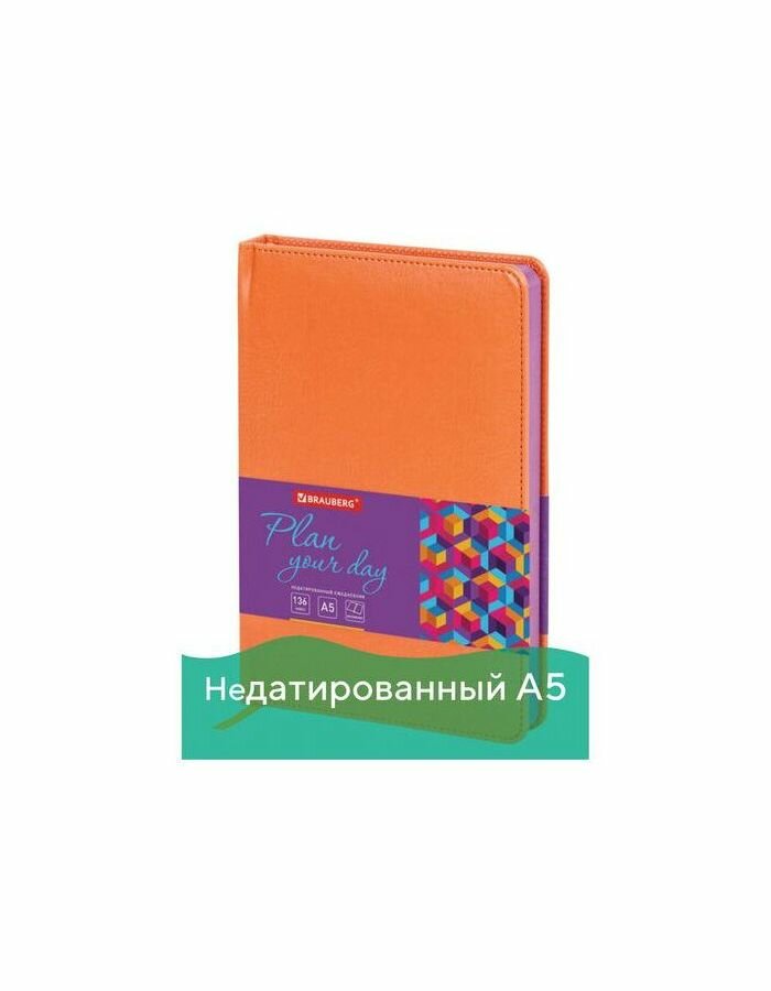 Купить Ежедневник недатированный А5 (138x213мм) BRAUBERG Rainbow, кожзам, 136л, оранжевый, 111668