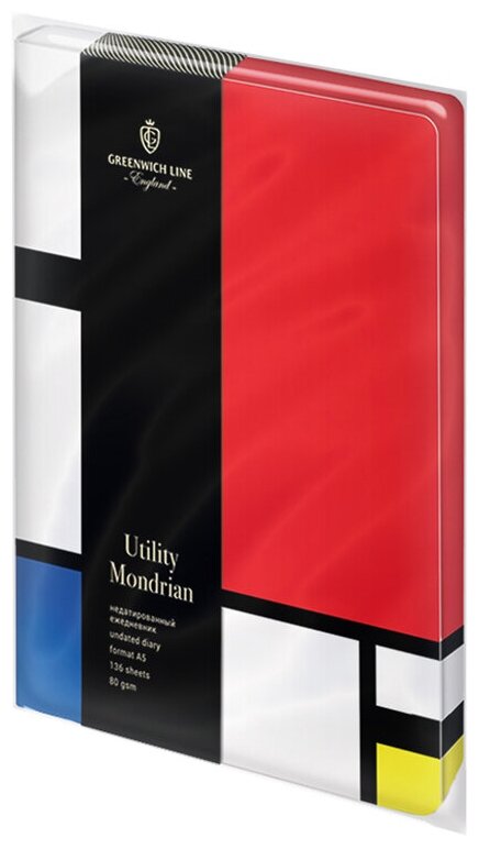 Ежедневник А-5 недатир. Greenwich Line. Utility. Mondrian, кожзам, тисн.фольгой, цв. срез ENA5-30104 интересное: