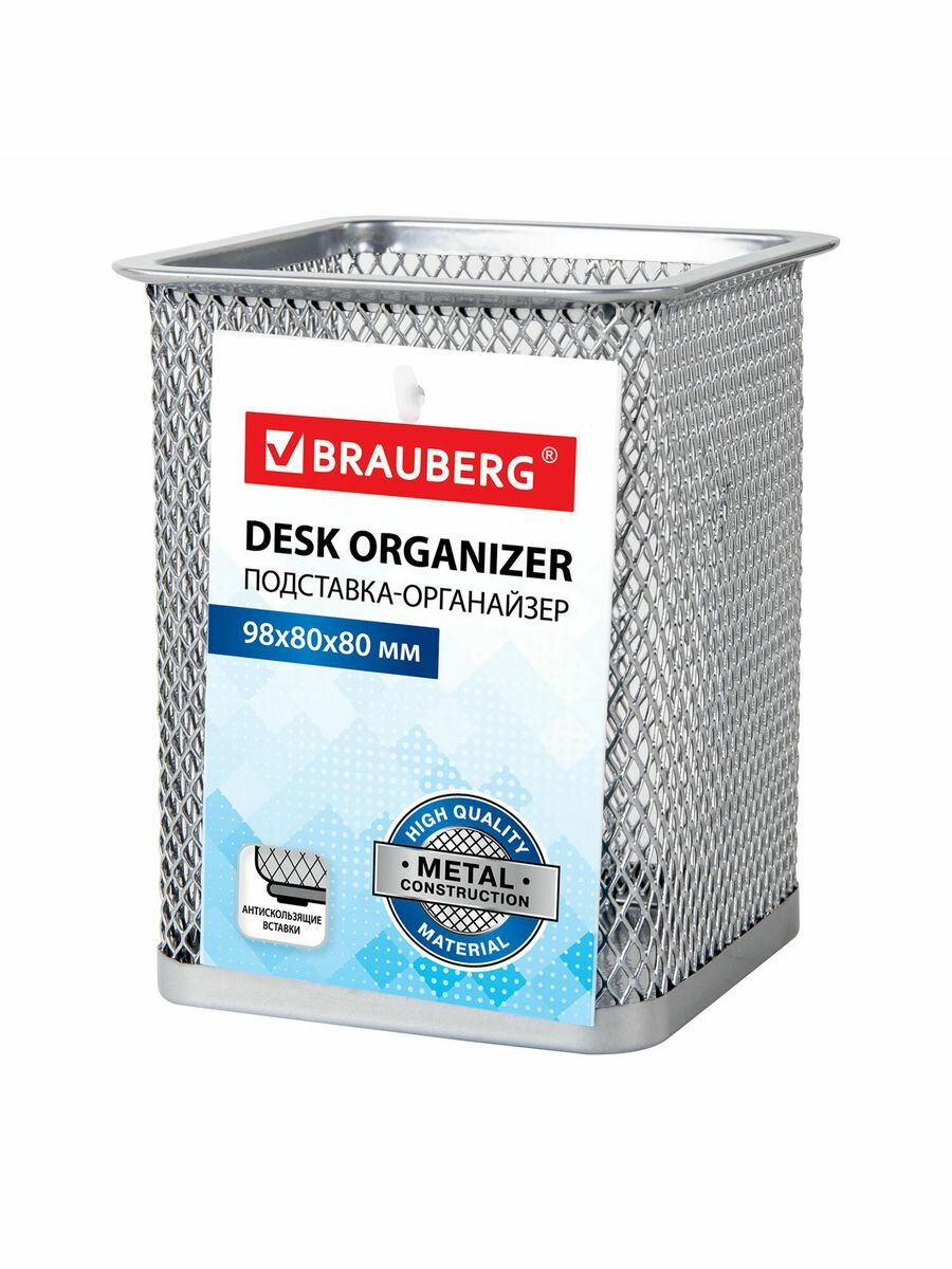 Подставка-органайзер BRAUBERG "Germanium", металлическая, квадратное основание, 98х80х80 мм, серебристая, 231939 (цена за 1 ед.товара)