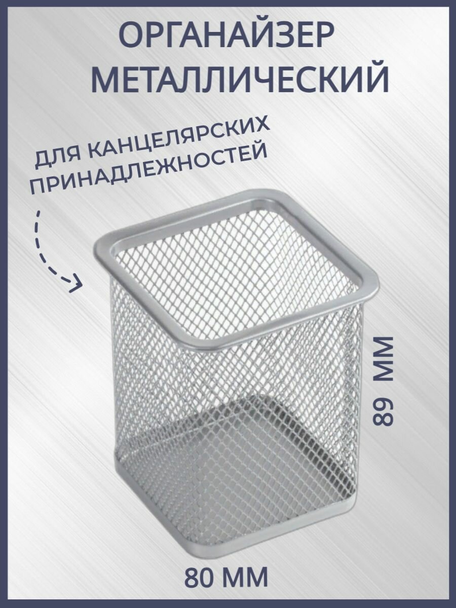 Подставка-органайзер BRAUBERG "Germanium", металлическая, квадратное основание, 98х80х80 мм, серебристая, 231939 В комплекте: 1шт.
