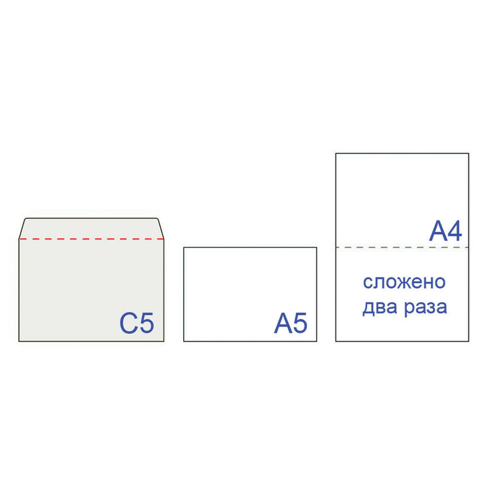 Конверты С5 (162х229 мм), клей, 80 г/м2, комплект 1000 шт., треугольный клапан, 124402