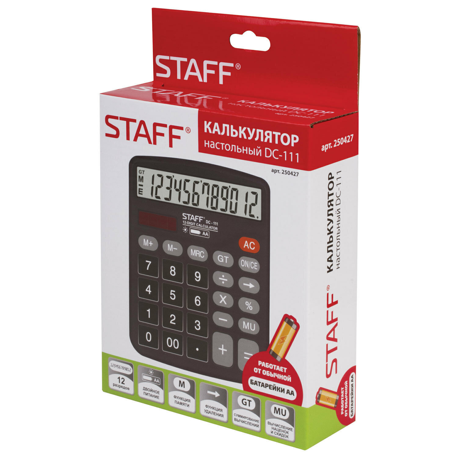 Калькулятор настольный Staff Plus DC-111 (12-разрядный) черный, батарейка АА (250427)