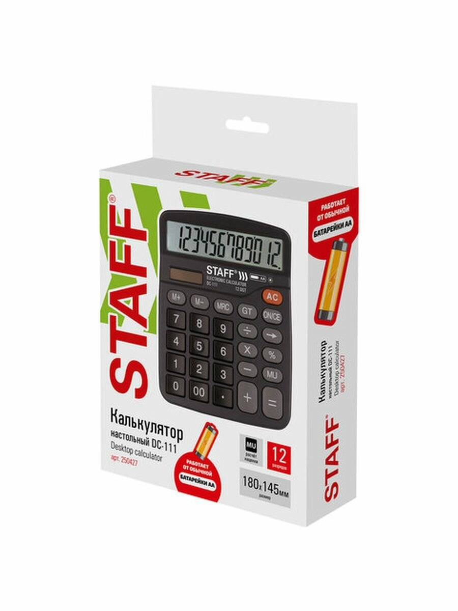 Калькулятор настольный STAFF PLUS DC-111 (180x145 мм) 12 разрядов двойное питание +батарейка АА, 1 шт