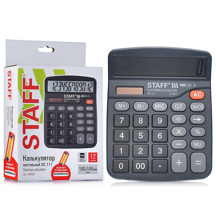 СохранитьКалькулятор настольный STAFF PLUS DC-111 (180x145 мм), 12 разрядов, двойное питание, +батарейка АА, 250427 интересное: