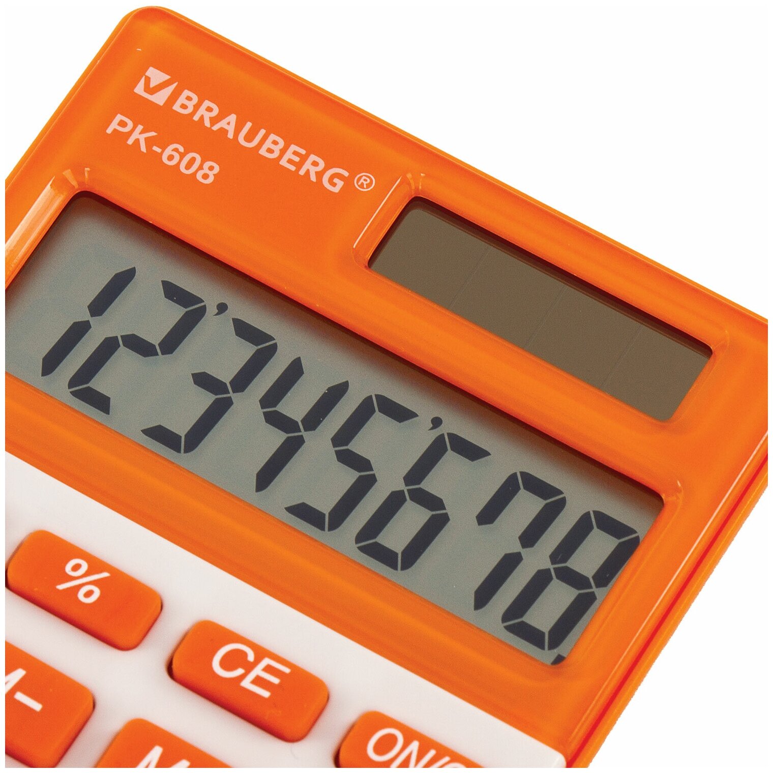 Калькулятор карманный BRAUBERG PK-608-RG (107x64 мм), 8 разрядов, двойное питание, оранжевый, 250522 В комплекте: 1шт.