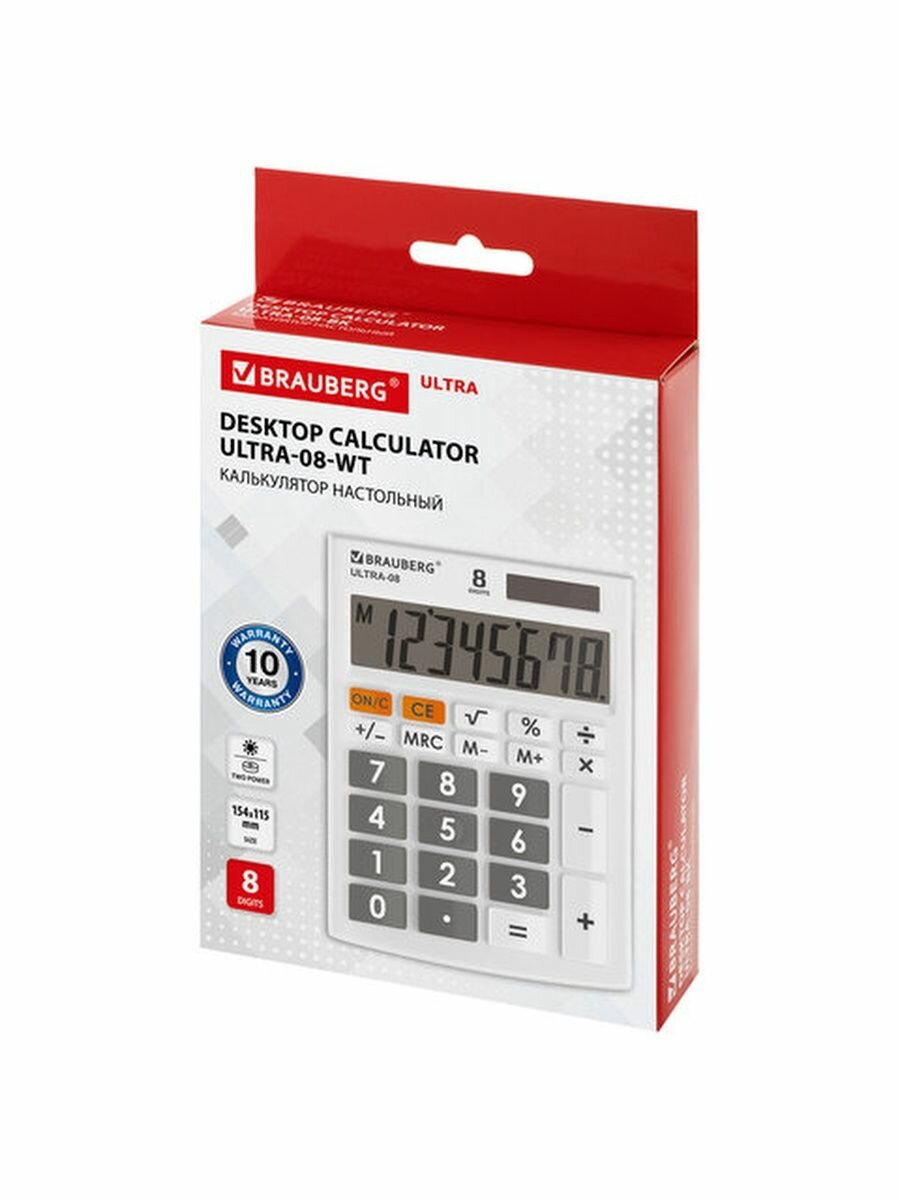 Калькулятор настольный BRAUBERG ULTRA-08-WT, компактный (154x115мм), 8 разрядов, белый, 250512