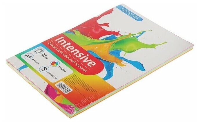 Бумага цветная А4, 100 листов Calligrata Интенсив, 5 цветов, 80 г/кв. м, 1 набор