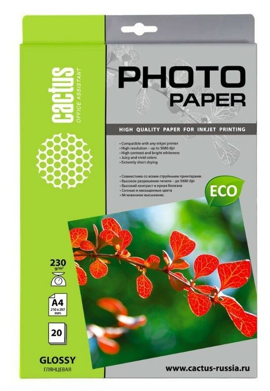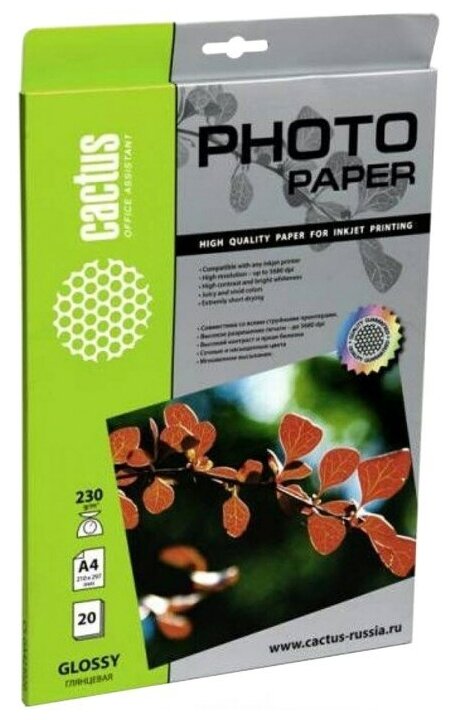 Фотобумага Cactus CS-GA423020E, глянцевая, А4, 230 г/м2, 20 листов