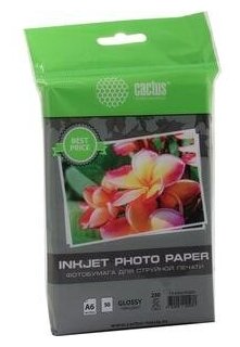 Фотобумага для струйной печати А6 (100 х 150 мм), 50 листов Cactus, 230 г/м2, односторонняя, глянцевая, в пакете