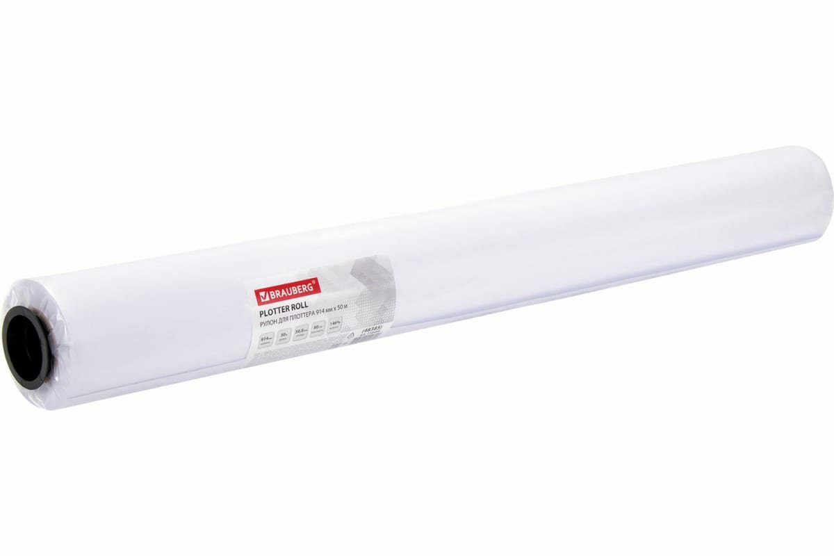 Рулон для плоттера и инженерных машин BRAUBERG, А0+, 914 мм х 50 м х втулка 50 мм х диаметр 100 мм, 80 г/м2, CIE 146%