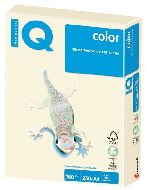 Бумага цветная IQ А4, 160 г, кремовый, пачка 250 листов