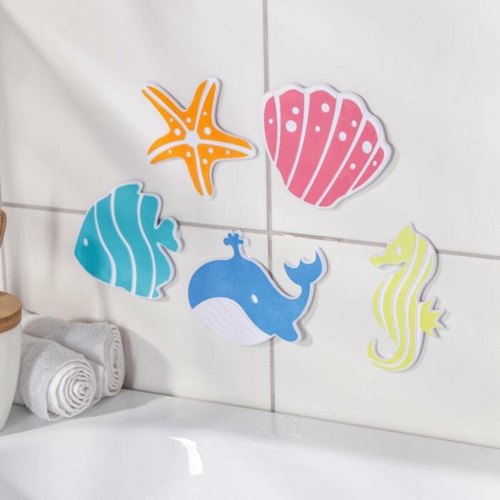 Купить Набор мини-ковриков для ванны на присосках Доляна «Океан», 16×16 см, 5 шт, цвет микс