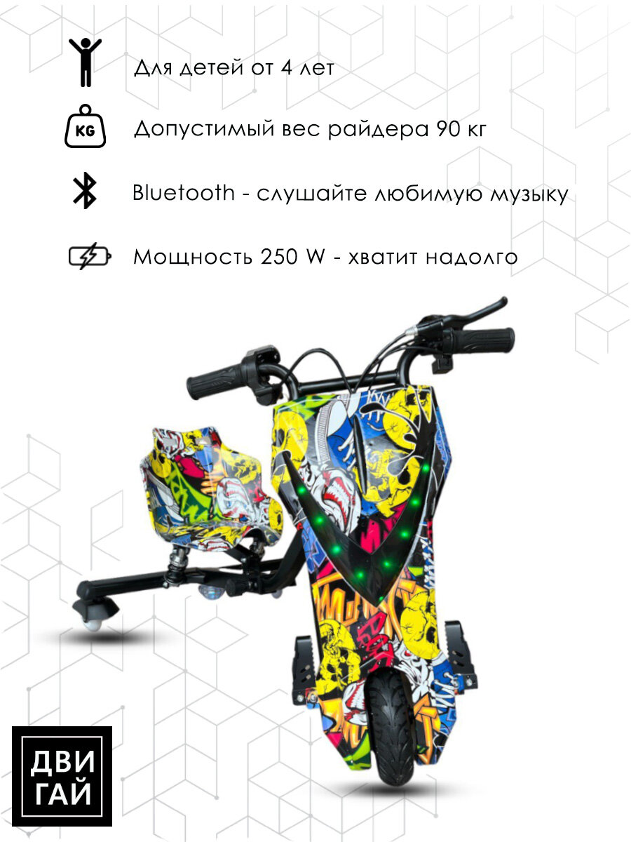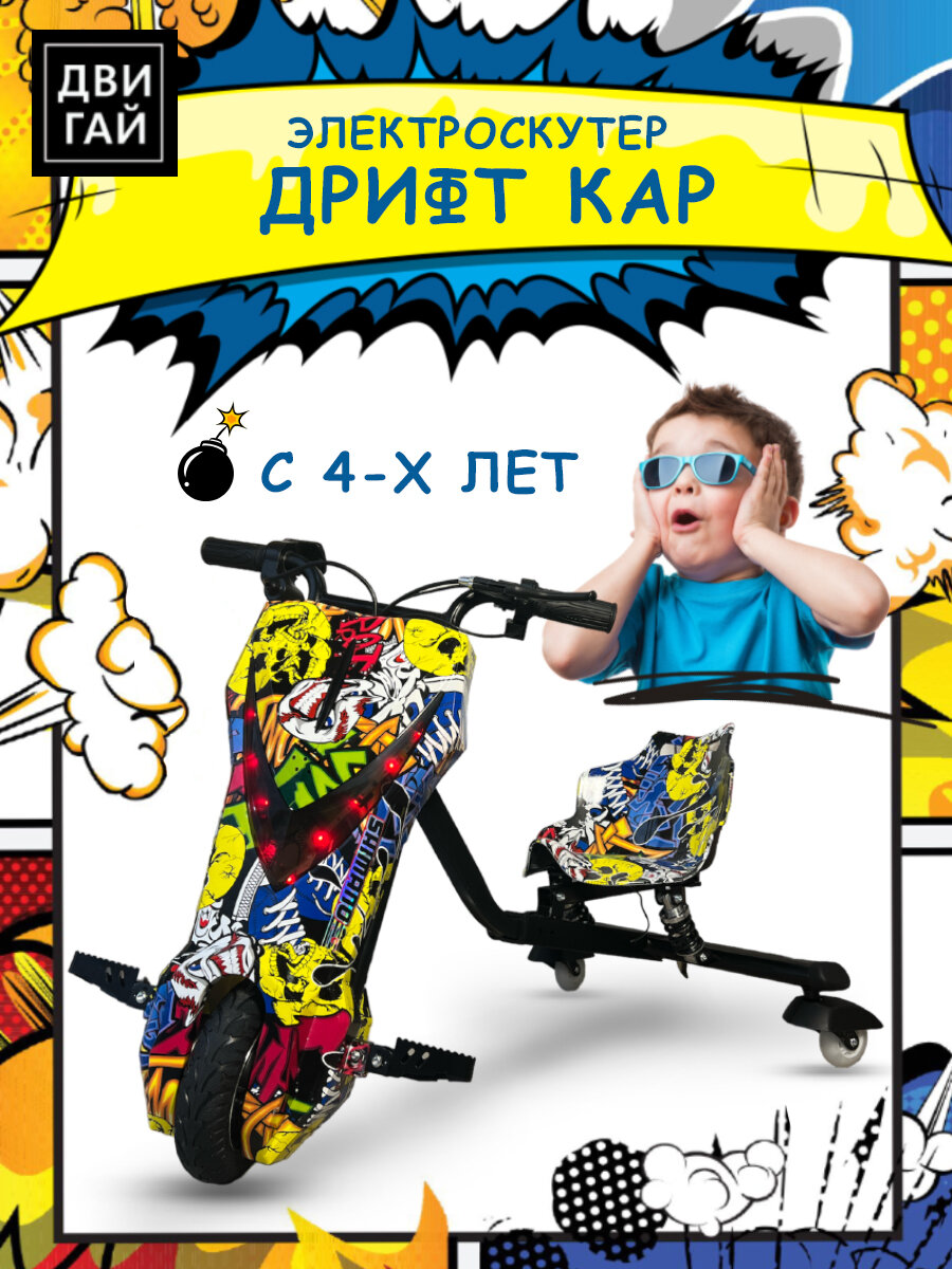Электроскутер Дрифт Карт Drift-Trike MINIPRO Mi T01 - Хип-хоп/Желтый граффити