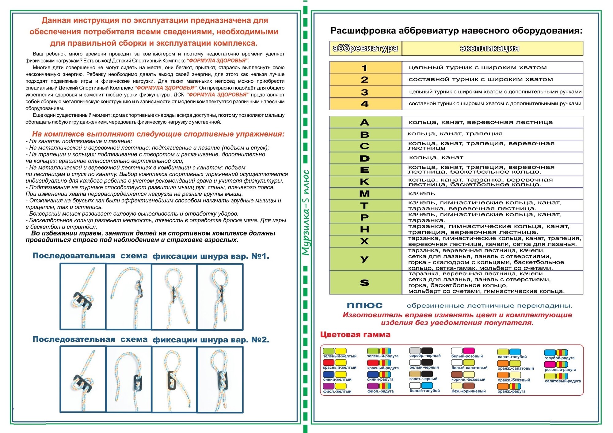 Детский спортивный комплекс Формула здоровья ДСК "" "Мурзилка S" салатовый/радуга