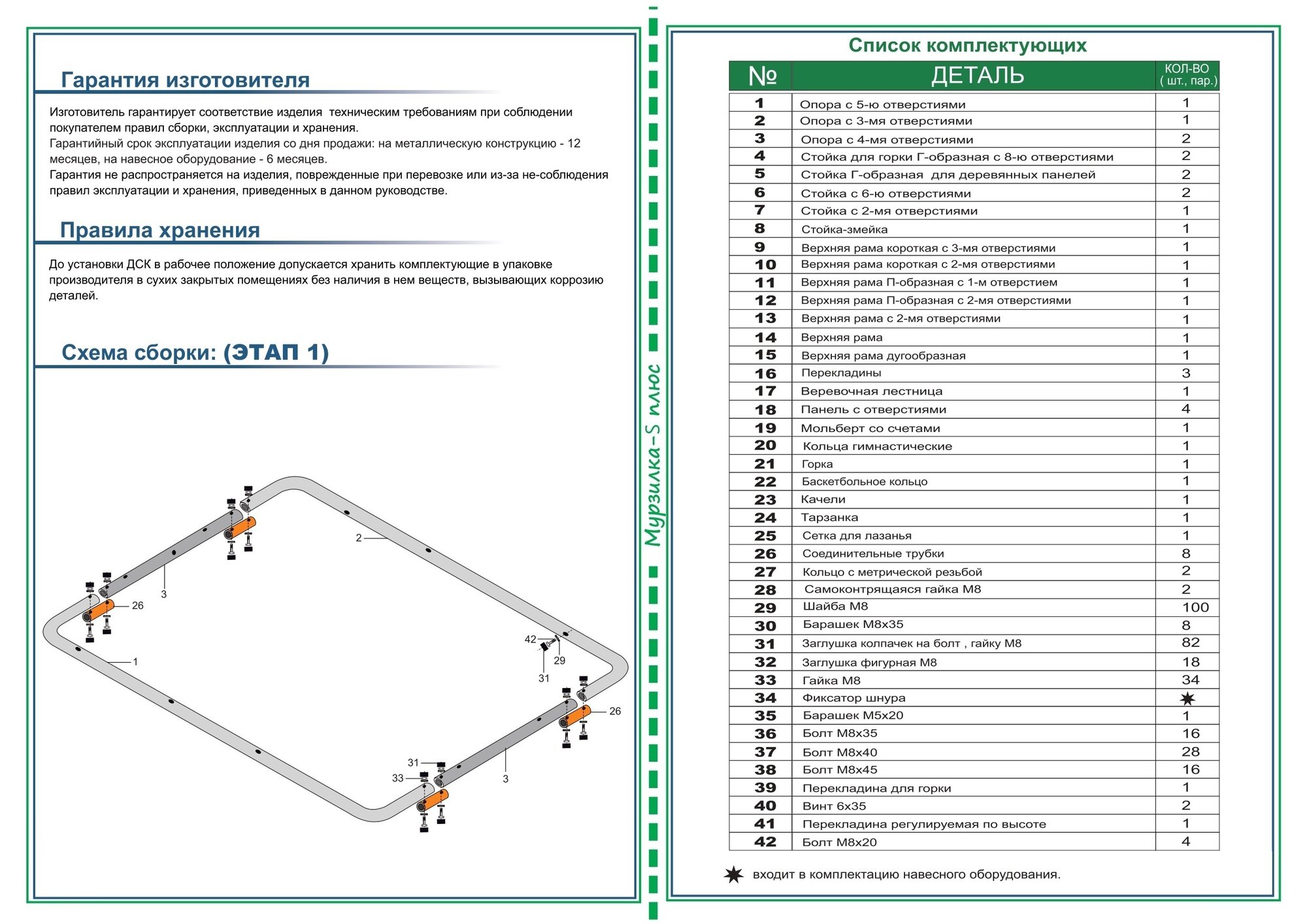 | Минусы: | В некоторых деталях был брак - не просверлены дырки для крепления в нескольких рейках. Пришлось покупать соответствующее сверло по металлу и исправлять брак. Плюс в двух местах была испорчена резьба. Опять же пришлось покупать инструмент для нарезки резьбы.