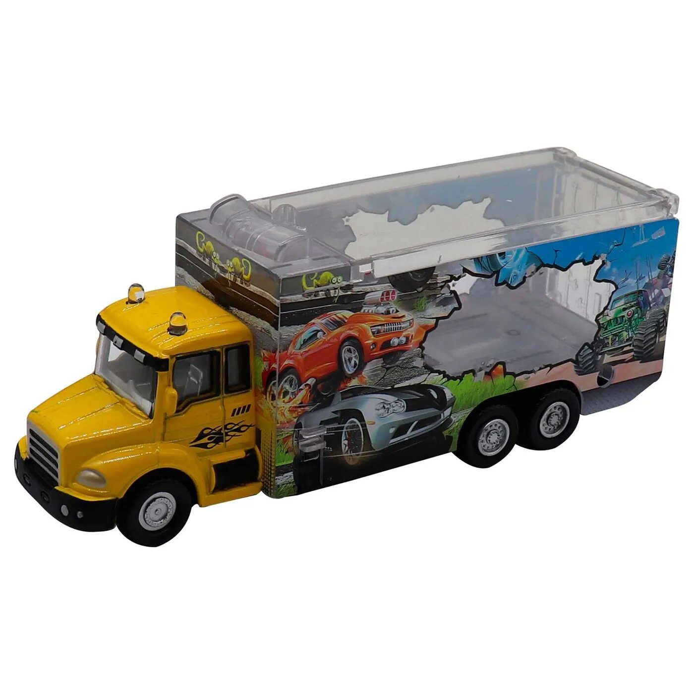 Грузовик Funky Toys с машинкой, die-cast, зеленая, спусковой механизм, 1:60 (FT61055)