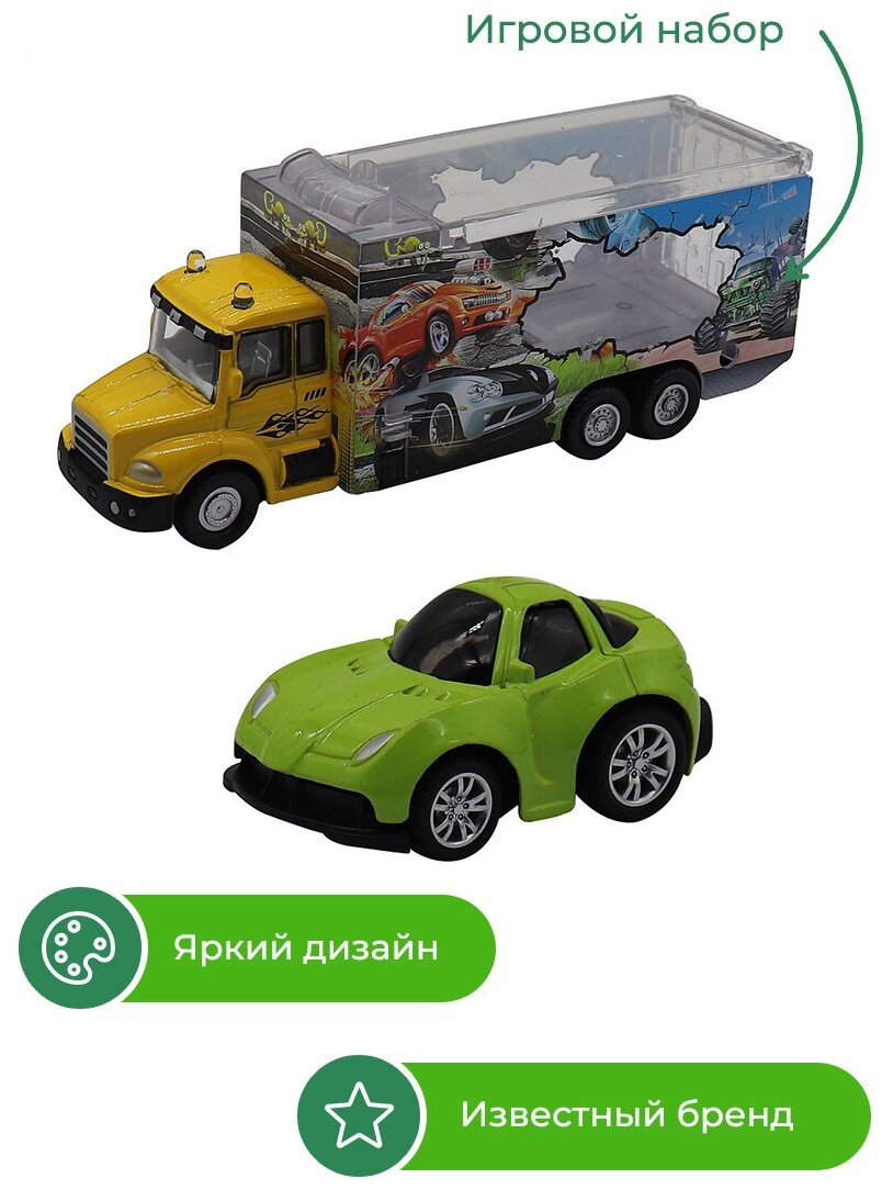 Набор грузовик + машинка die-cast зеленая, спусковой механизм 1:60 Funky toys FT61055