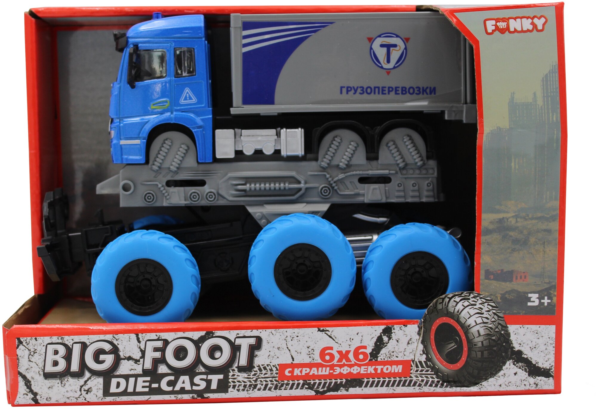 Грузовик с краш-эффектом, кабина die-cast, фрикционный, 6*6, 1:43 Funky toys FT61098 интересное: