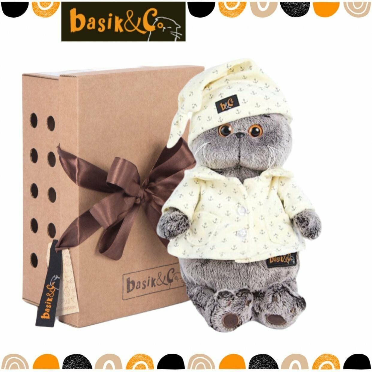 Мягкая игрушка 22 см Basik&Co в подарочной коробке - Кот Басик в пижаме