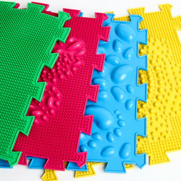 ОртоПазл Массажный коврик - пазл, модульный ОРТО пазл, микс «Начинайка», 8 модулей, 4 вида покрытия, от 12 мес. интересное: