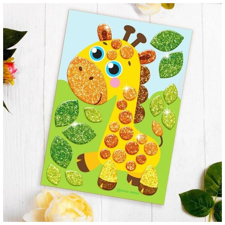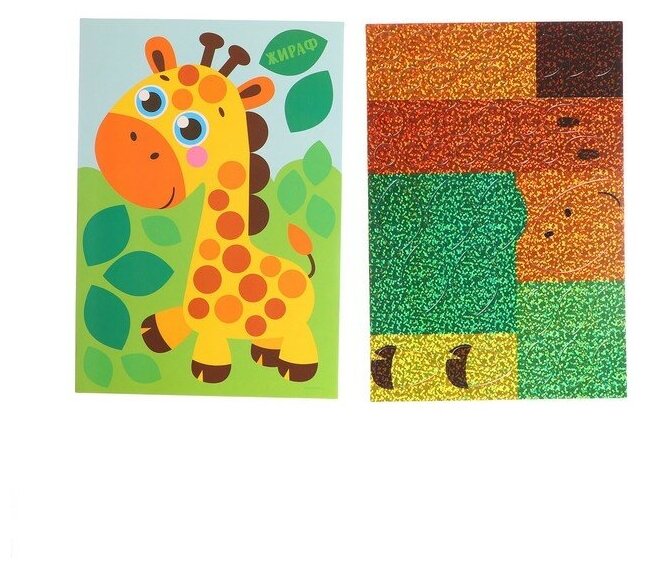 Аппликация стикерами форменными стикерами "Жираф", набор для творчества, стикерная мозаика