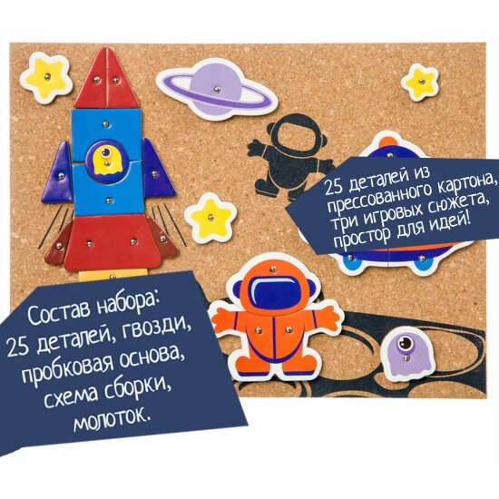 Набор для творчества BONDIBON ВВ3951 Мозаика с гвоздями и молоточком Космос (прессованный картон) интересное: