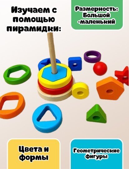 Деревянная логическая пирамидка/ Пирамидка-сортер/ Пирамидка для малышей интересное: