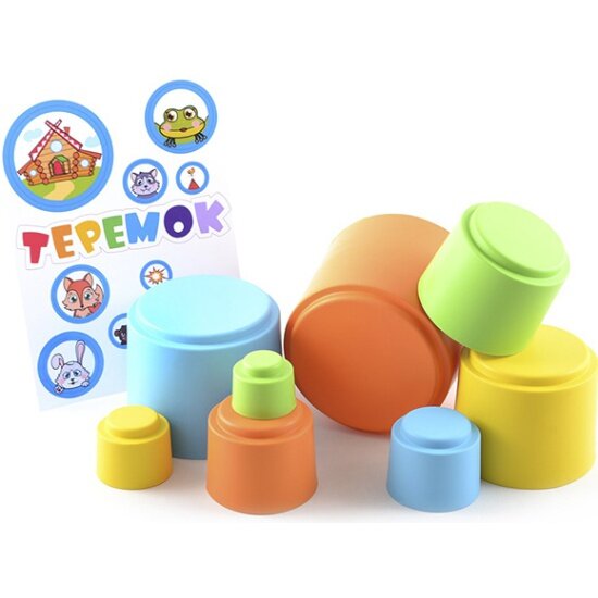 Купить Пирамидка кнопа 87031 мягкая, стаканчики с наклейками Теремок