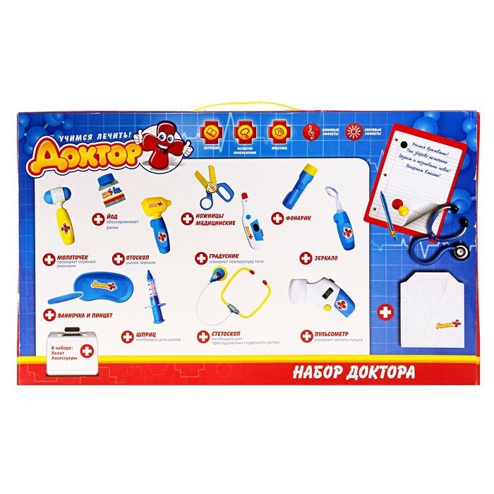 Набор доктора, 10 предметов с халатом, световые и звуковые эффекты