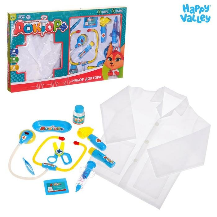 HAPPY VALLEY Набор доктора "ДОКТОР+" 10 предметов, с халатом, звук, свет №SL-1100В 656960