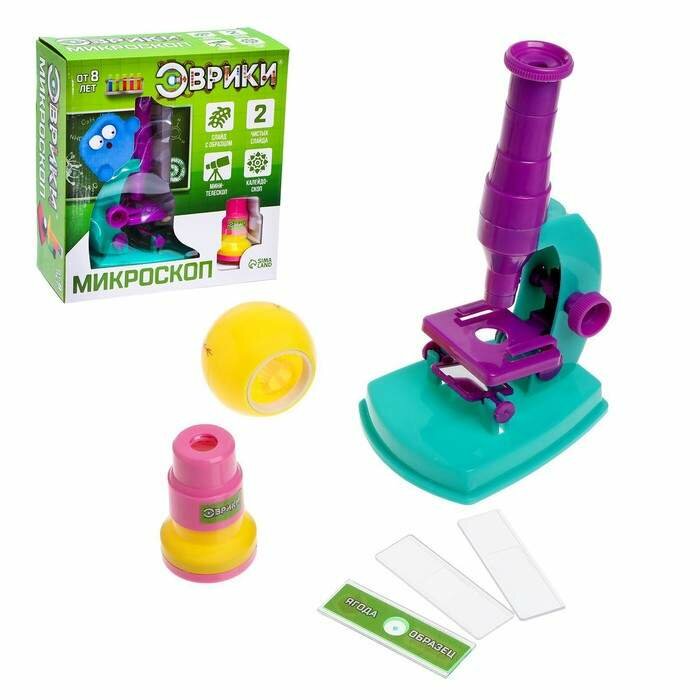 Набор биолога 6 предметов: микроскоп, 2 калейдоскопа, 2 пустых слайда, образец клеток Эврики 689155 .
