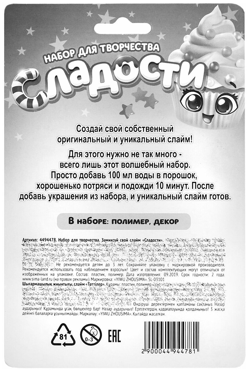 Набор для творчества замиксуй свой слайм «Сладости», в пакете