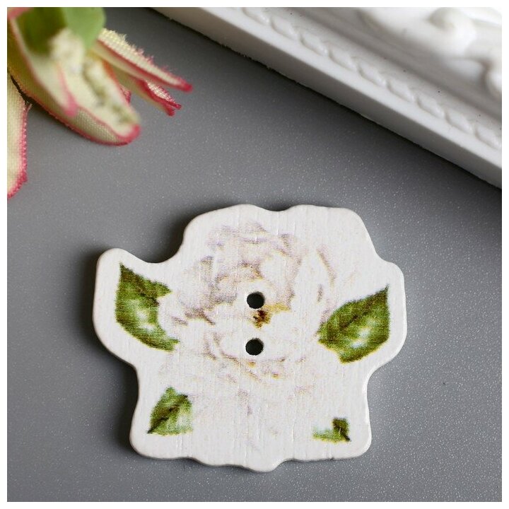 Купить Набор пуговиц для творчества дерево "Белый пион" набор 14 шт 2,9х2,5 см