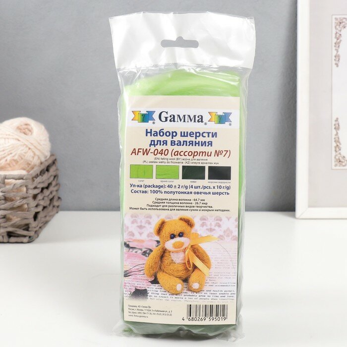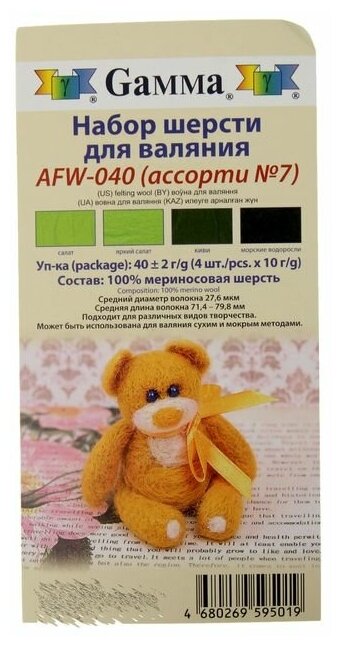 Gamma' AFW-040 набор шерсти для валяния 100% мериносовая шерсть 4 х 10 г цвет ассорти № 7