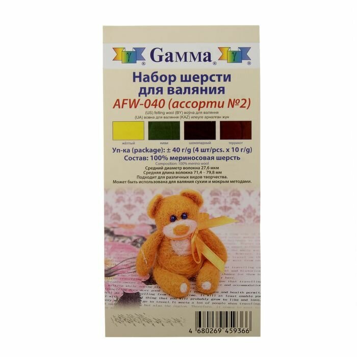 Gamma' AFW-040 набор шерсти для валяния 100% мериносовая шерсть 4 х 10 г цвет ассорти № 2