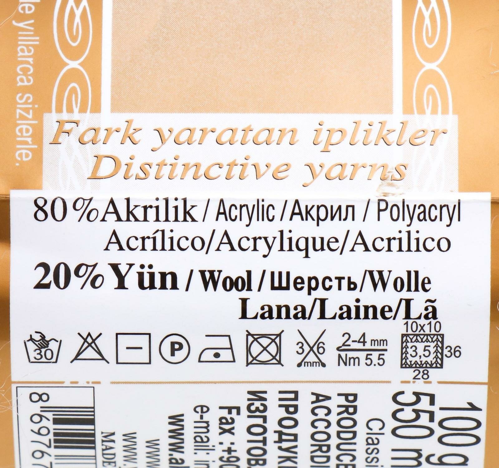 Пряжа ALIZE Angora Gold, молочно-бежевый - 506, 20% шерсть, 80% акрил, 5 мотков, 100 г., 550 м.