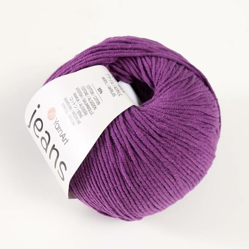 Пряжа YarnArt Jeans, цвет лиловый 89, 1 моток, 50г/160м, состав 45% акрил, 55% хлопок, ярнарт джинс