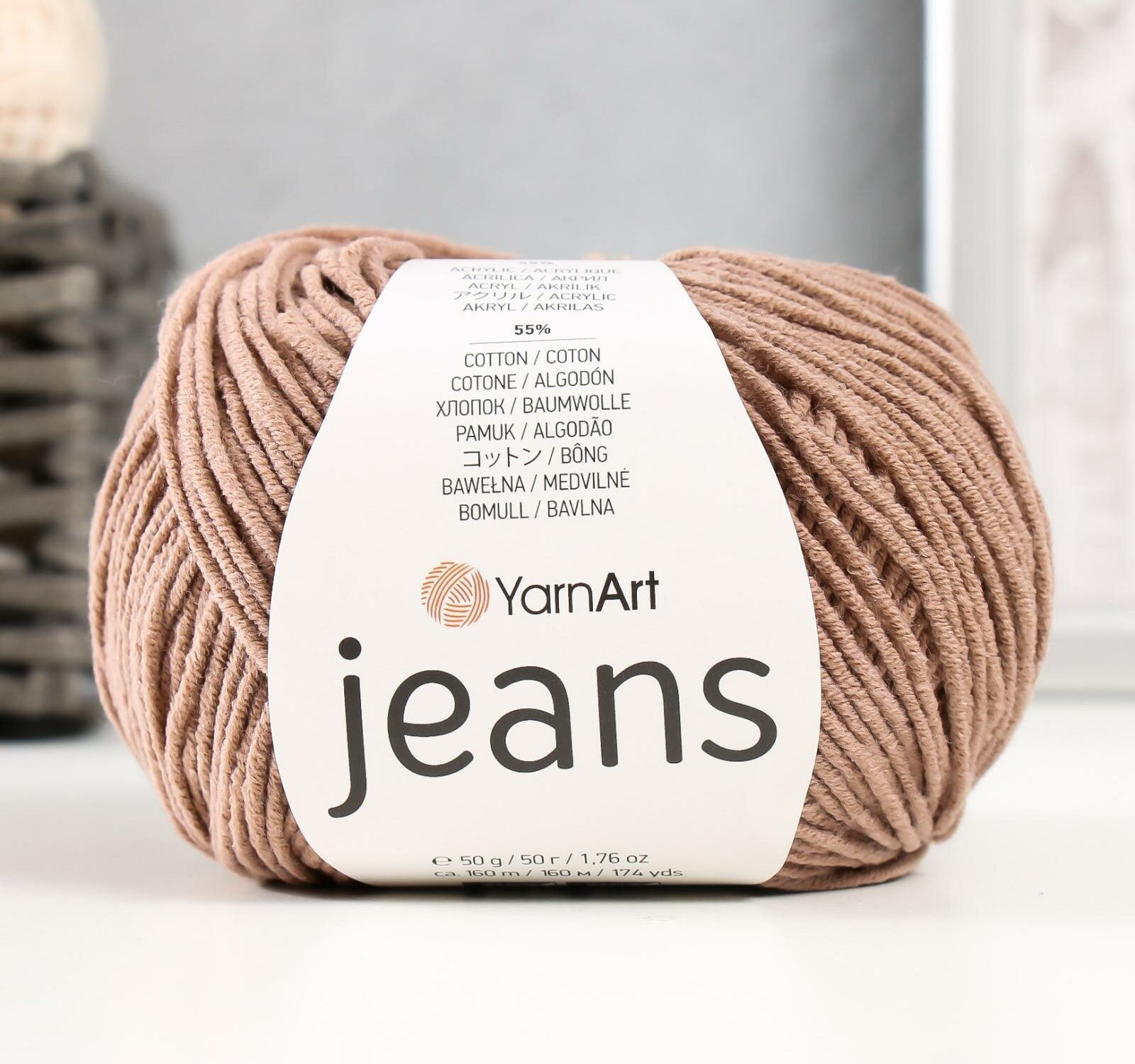 Пряжа YarnArt Jeans (Джинс) 71 светло-коричневый 55% хлопок, 56% полиакрил 50г 160м 5шт