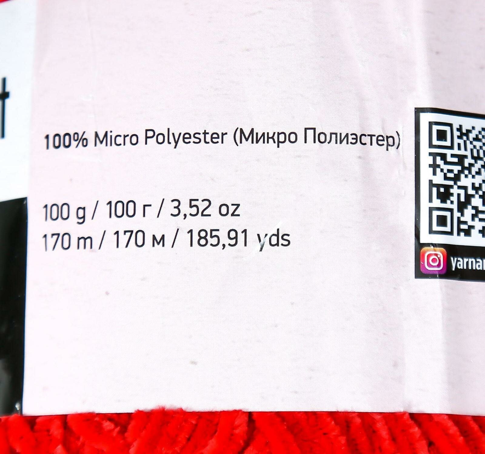 Пряжа для вязания YarnArt 'Velour' 100г, 170м (100% микрополиэстер) (846 красный), 5 мотков