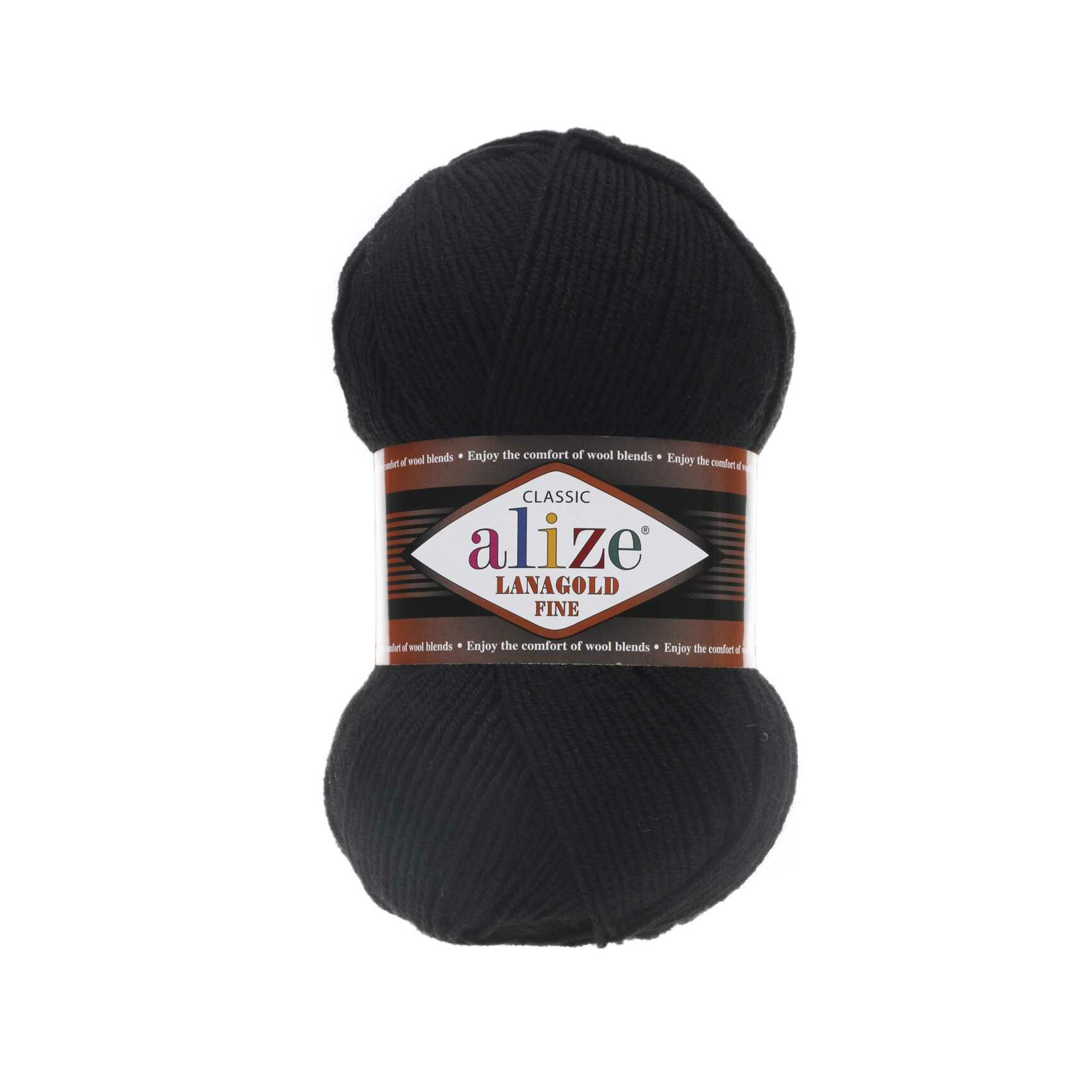 Пряжа для вязания ALIZE LANAGOLD Ализе Лана Голд , 60 черный, 100 гр, 240 м