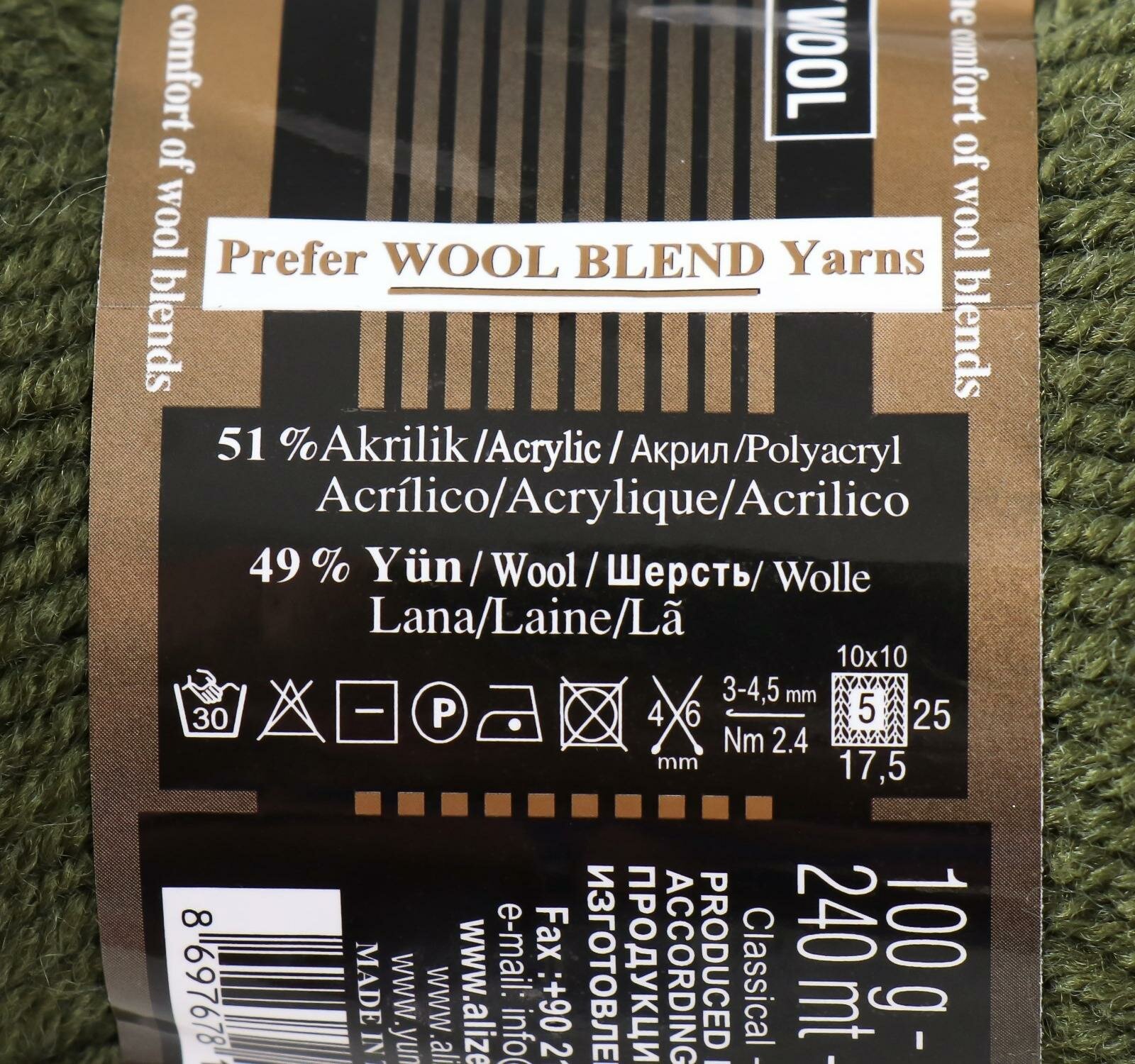 Пряжа Alize Lanagold (Ланаголд) цвет античный зеленый 507, 49% шерсть, 51% акрил 100г 240м 5шт