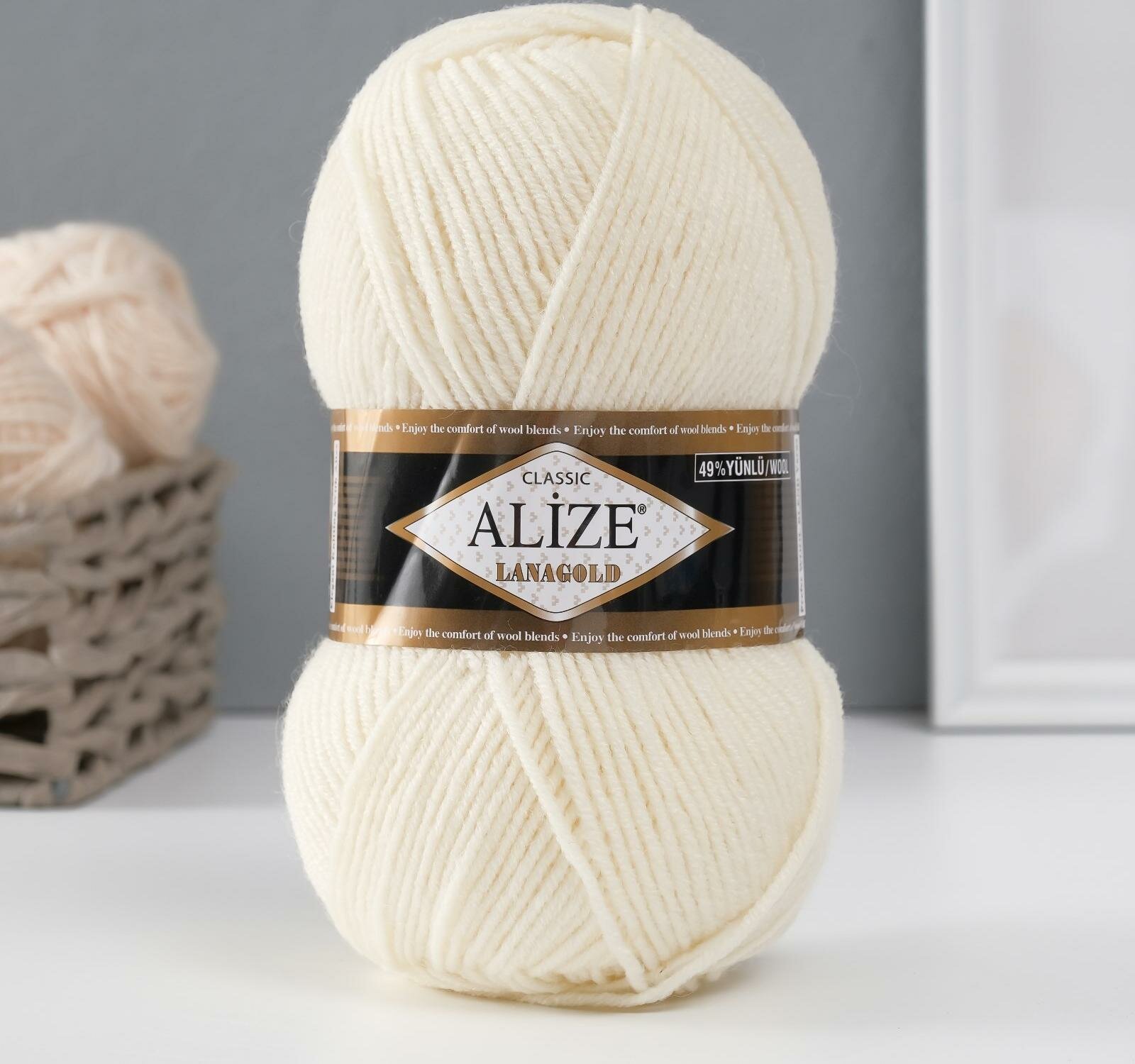 Пряжа Alize Lanagold (Ланаголд) цвет кремовый 01, 49% шерсть, 51% акрил 100г 240м 5шт.
