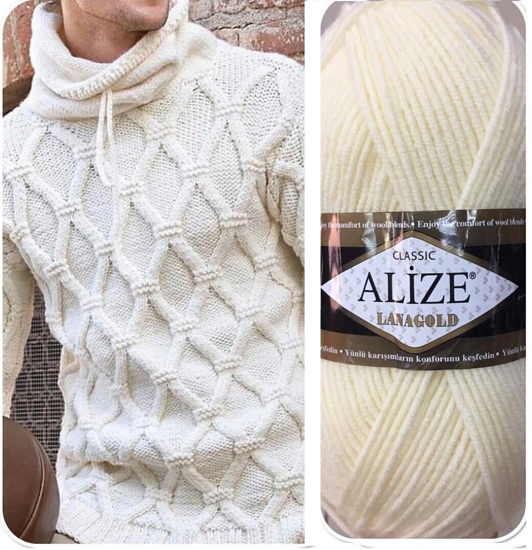 Пряжа Alize Lanagold (Ланаголд) - 1 моток Цвет: 01 кремовый 49% шерсть, 51% акрил 100г 240м