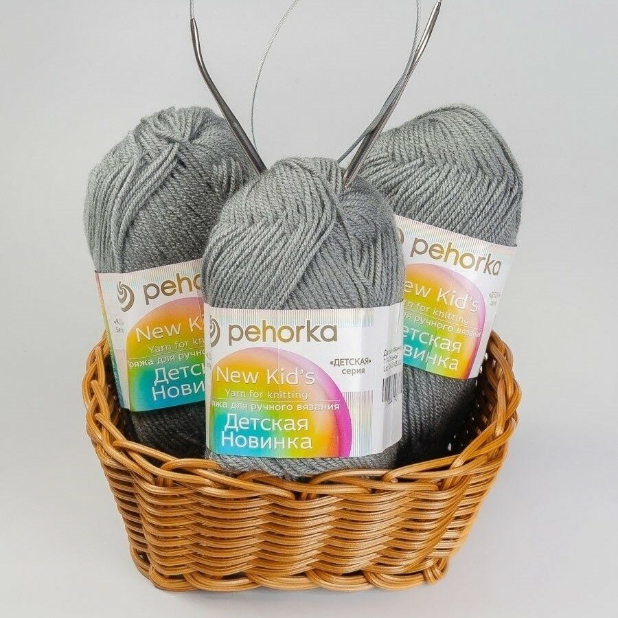 Пряжа Пехорка Детская новинка - 10 мотков Цвет: 08 светло-серый 100% акрил высокообъемный 50г 200м